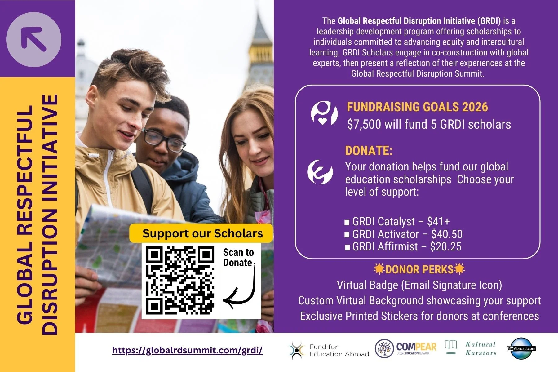 Powered by COMPEAR Global Education Network, GoAbroad.com, Kultural Kurators, and The Fund for Education Abroad, the GRDI Scholarship is more than financial aid; it's a call to action for social justice, activism, and innovative change. The scholarship, offering awards ranging from $1,500 to $3,000, supports travel abroad or domestic intercultural programs. It's aimed at individuals ready to contribute to a more equitable and inclusive world through their unique ideas and projects.